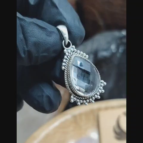 Dije con piedra natural cuarzo translúcido.